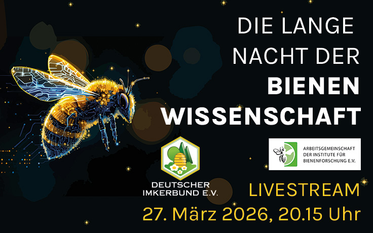 Der D.I.B. präsentiert am 27. März 2026, ab 20:15 Uhr (MEZ), sein erfolgreiches Format „Die Lange Nacht der Bienenwissenschaft“ (DLNDB) – in Zusammenarbeit mit der Arbeitsgemeinschaft der Institute für Bienenforschung e. V.